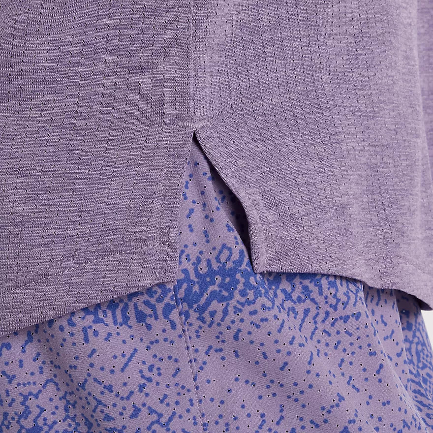 Den melerede lilla farve giver et moderne og stilrent udtryk, der nemt kan kombineres med resten af træningsgarderoben.
