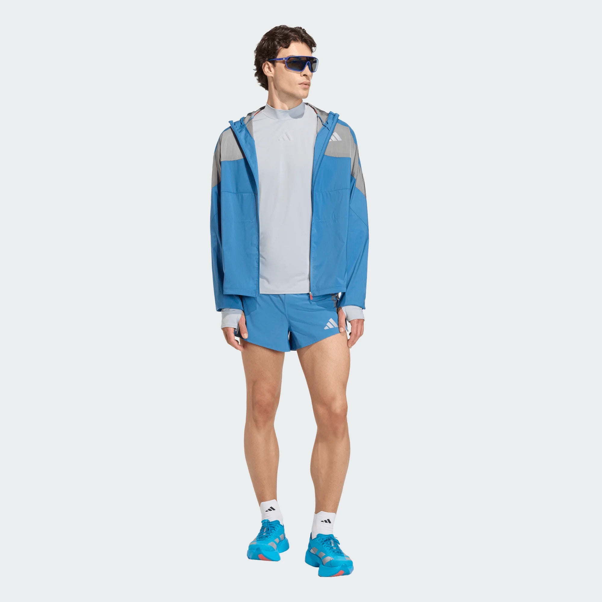 Jakken har et strømlinet Adizero-design med fokus på bevægelsesfrihed og minimal vægt. Reflekterende detaljer øger synligheden i mørke, mens den lette konstruktion gør den nem at pakke sammen og tage med. Pasformen er atletisk og skabt til performance uden unødvendig volumen.