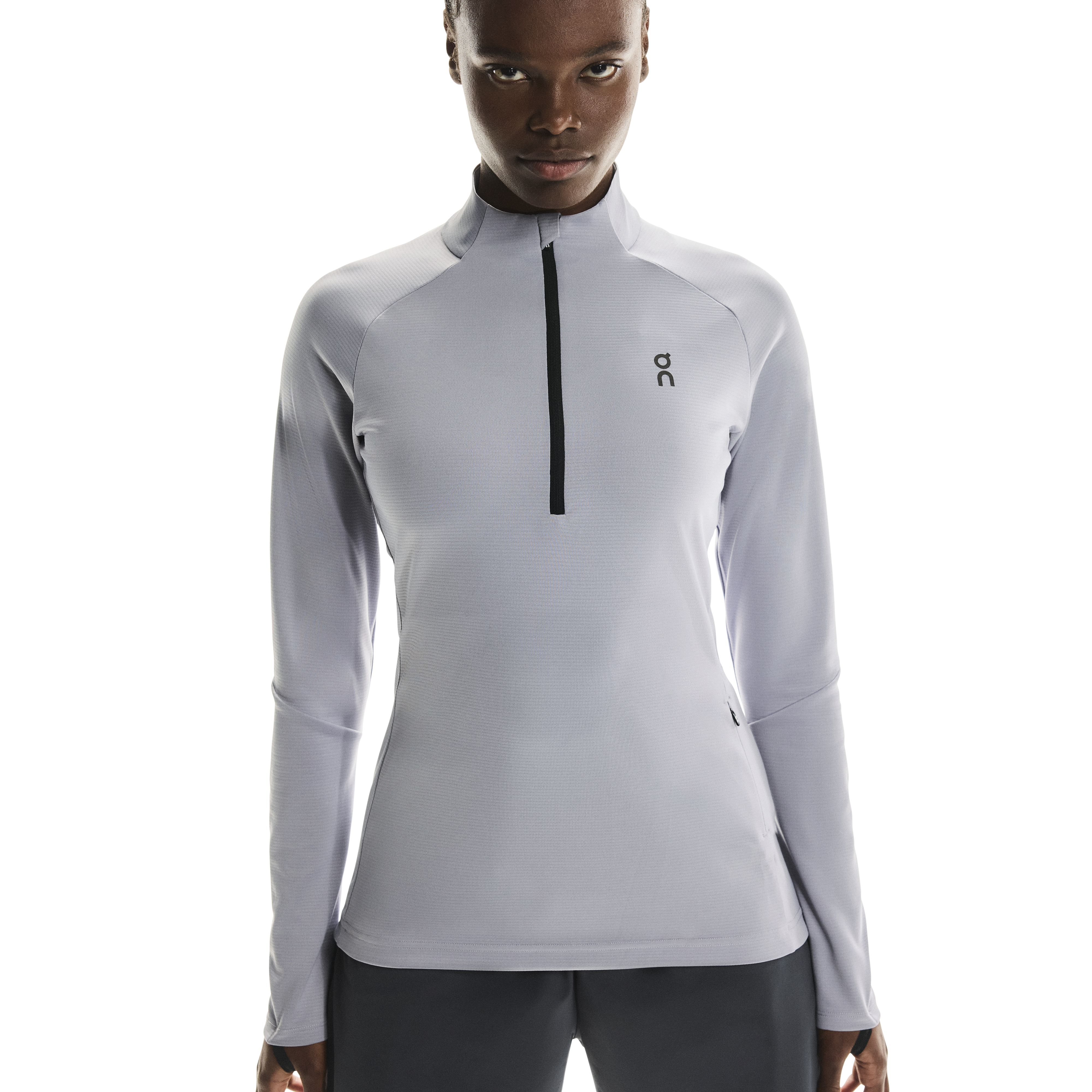 The quarter-length front zipper makes it easy to put on and take off the shirt and adjust the ventilation as needed. Thumbholes provide extra coverage and warmth on cold days, and a discreet side zipper pocket provides space for cards or small items. Reflective details increase your visibility in the dark or low light.